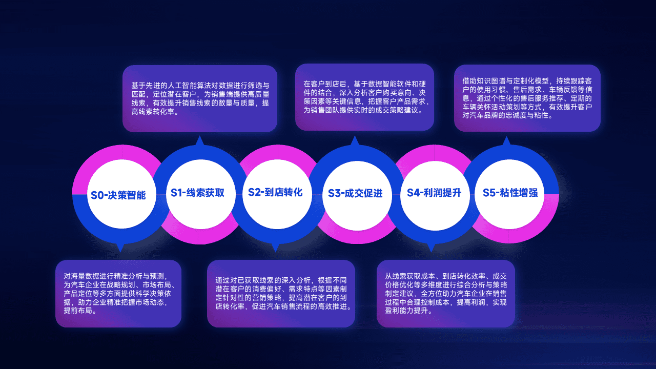 通过拓宽潜在客户来源、、、、优化线索分配并提高到店转化率,,,以增强销售效率。。同时,,,,利用线索数据不断优化分析模型,,,,有效提升转化率,,,,扩大营销影响力。。。